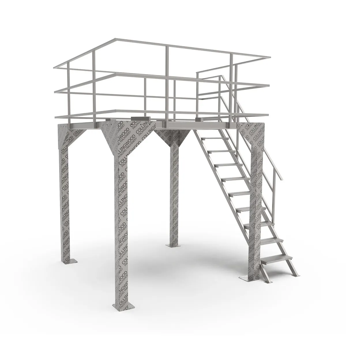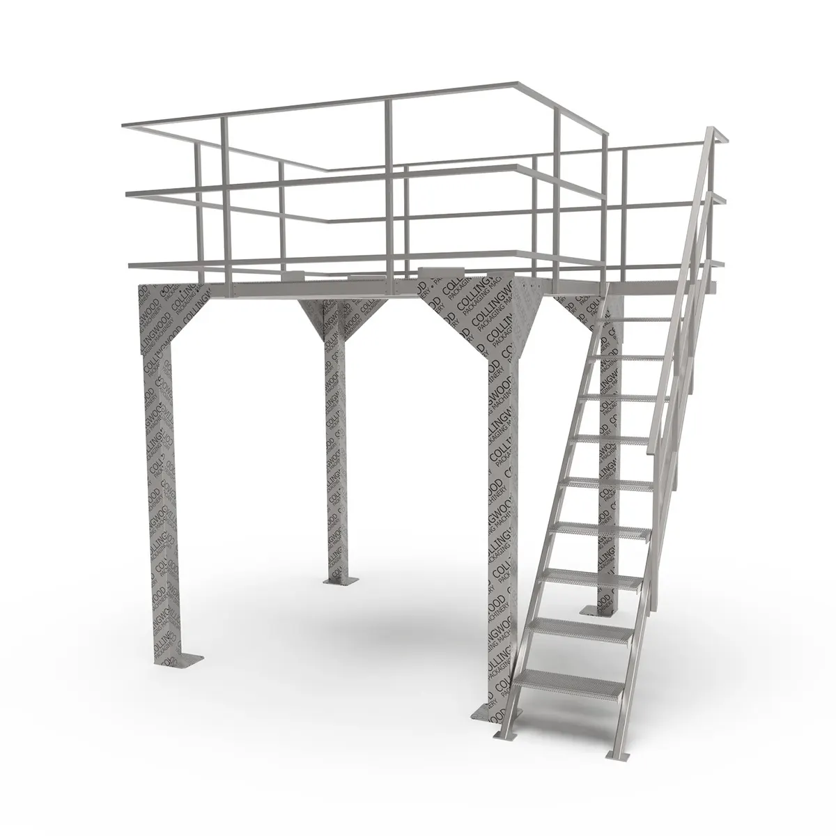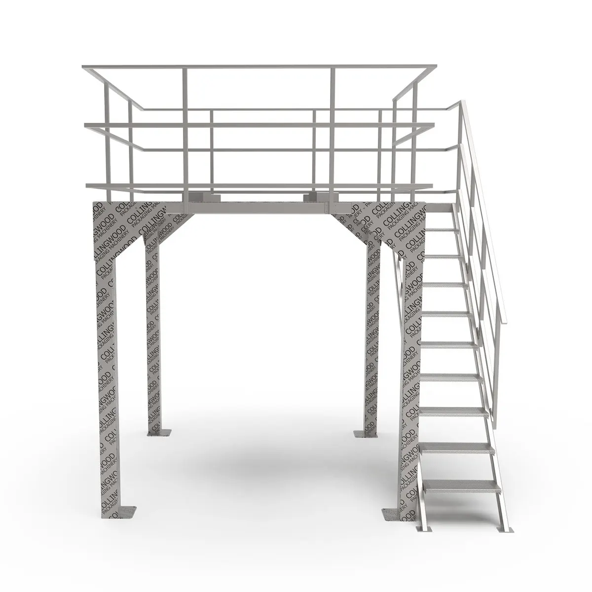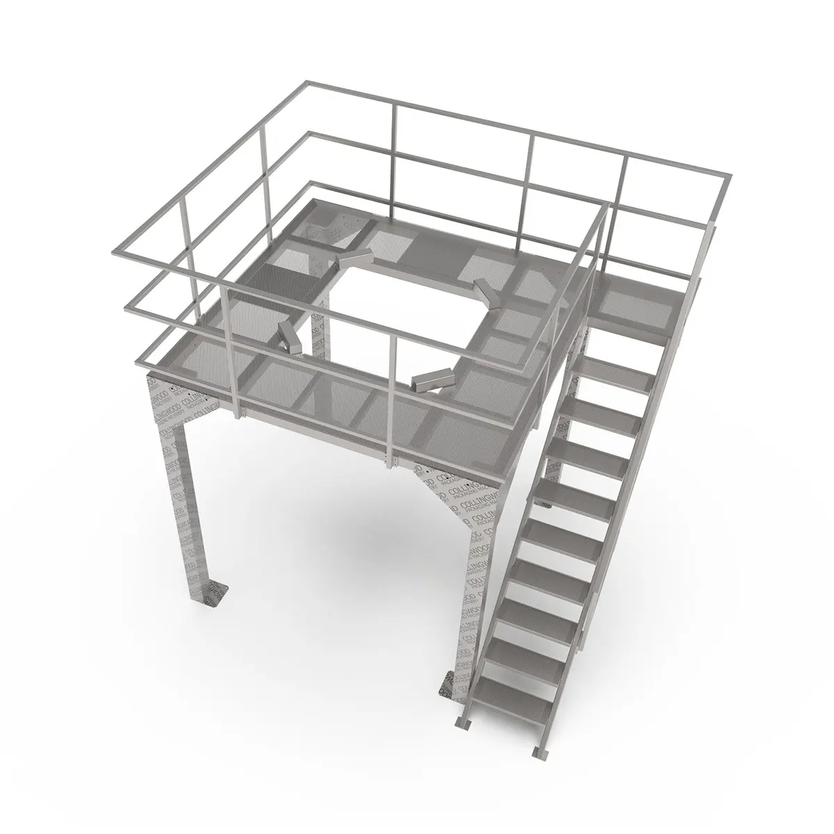 Le pont mezzanine ou plate-forme exerce différentes fonctions. D’abord cette plateforme supporte la machine de dosage du produit en permettant un accès aisé à chacune de ses parties afin d’effectuer les tâches de nettoyage ou d’entretien. En plus, étant donné qu’une machine se situe sur l’autre, on réussit à avoir un équipement d’emballage complet dans peu de superficie seulement.
