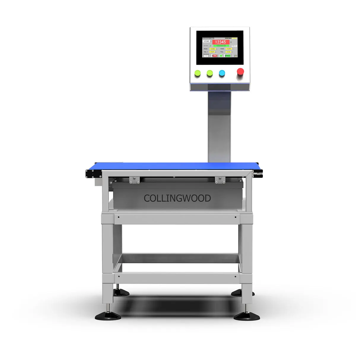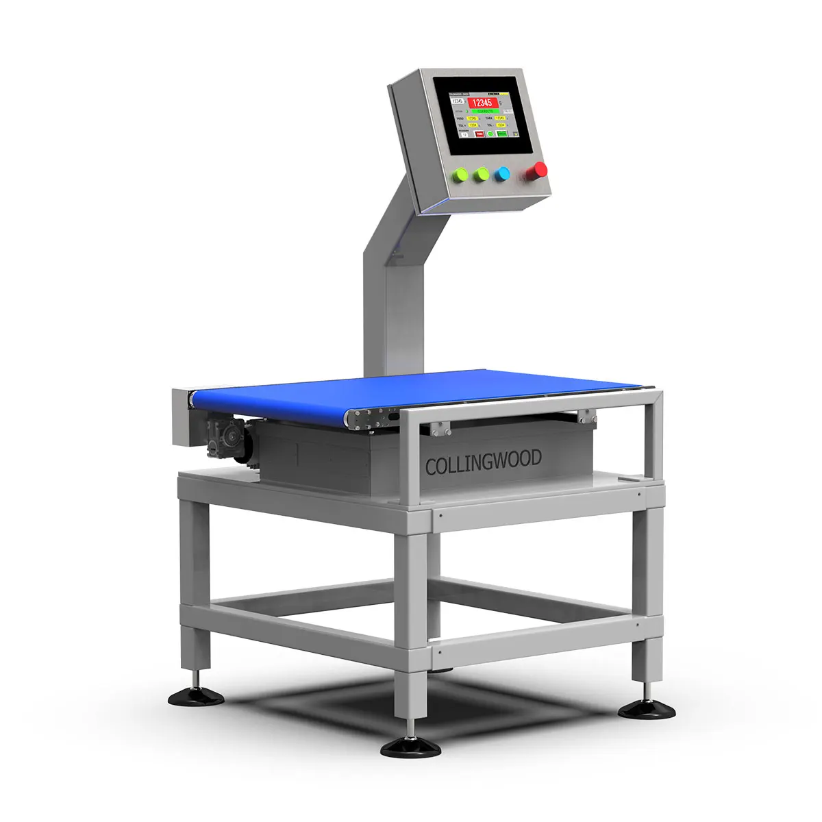 Cette machine comprend une bande de comparaison, où arrivent les sacs stabilisés par une bande d’entrée. Au moyen d’une cellule de pesage située sous la bande de comparaison, le poids est contrôlé, en donnant un signal d’acceptation ou de rejet, en fonction de celui-ci.