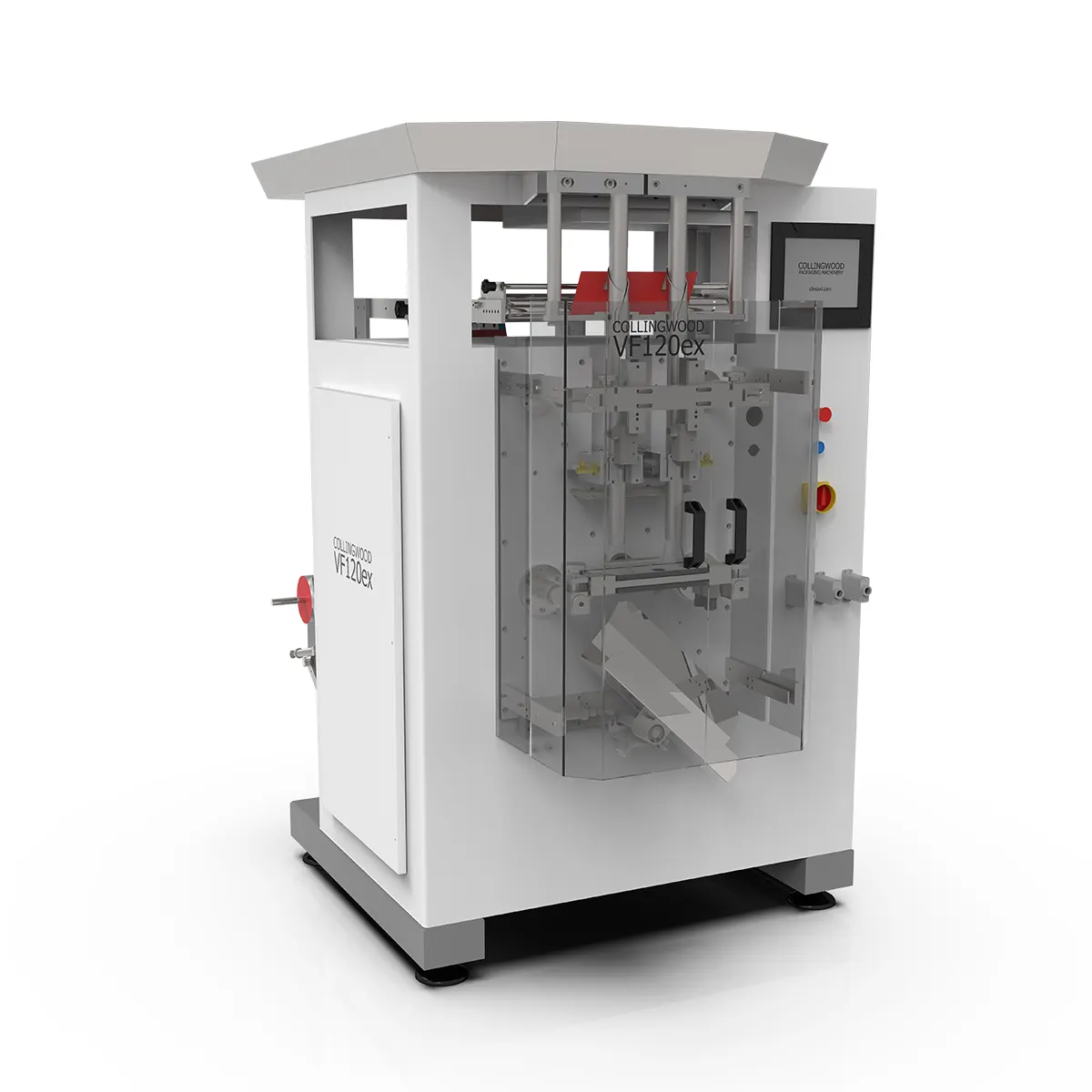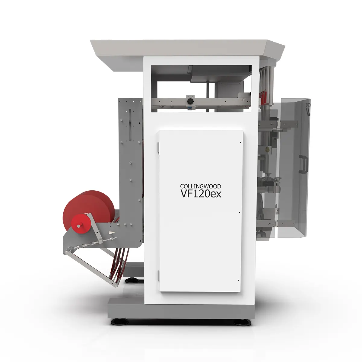 L’emballeuse verticale VF120ex est équipée d’un seul châssis et de deux tuyaux formateurs.