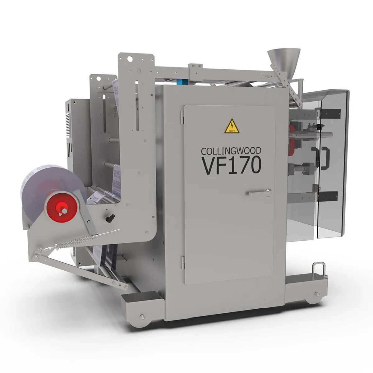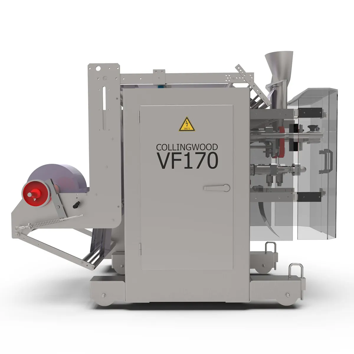 L’emballeuse verticale VF170 est une machine de petite taille. La largeur des sacs est comprise entre 50 (valeur minimum) et 170 mm (valeur maximum).
