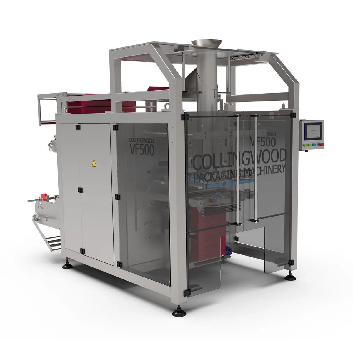 La machine à emballer verticale VF500 est sans aucun doute l’emballeuse verticale par excellence. Une emballeuse pour les grands formats, pour les grands volumes.